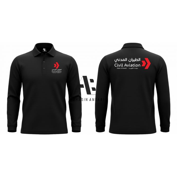 Civil Aviation Polo Shirt Long Sleeve -Black