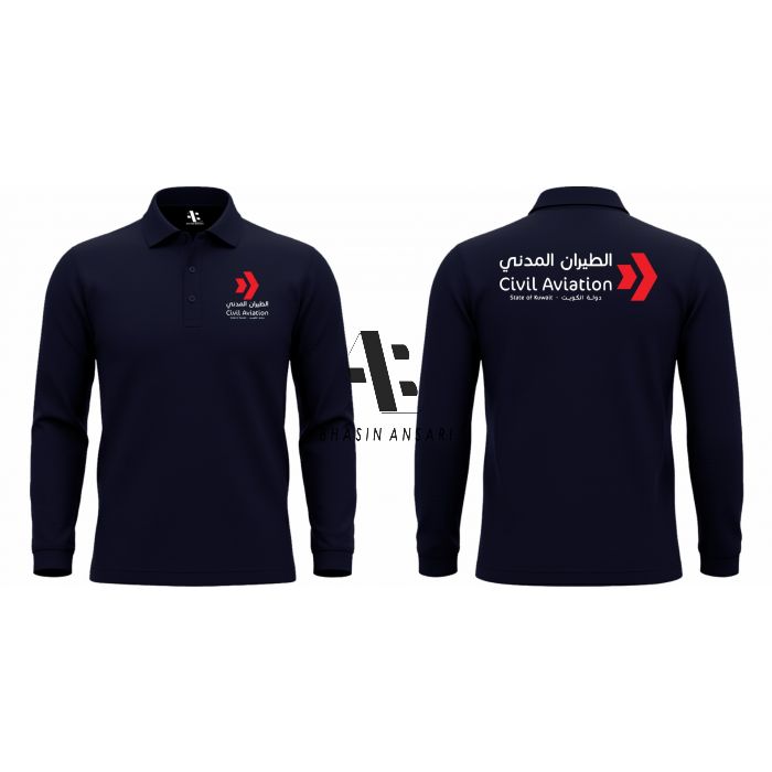 Civil Aviation Polo Shirt Long Sleeve - Navy Blue