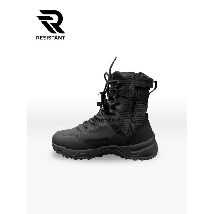 - Branding: The "RESISTANT Tactical Gear" branding is visible on the zipper flap and on the side panel.